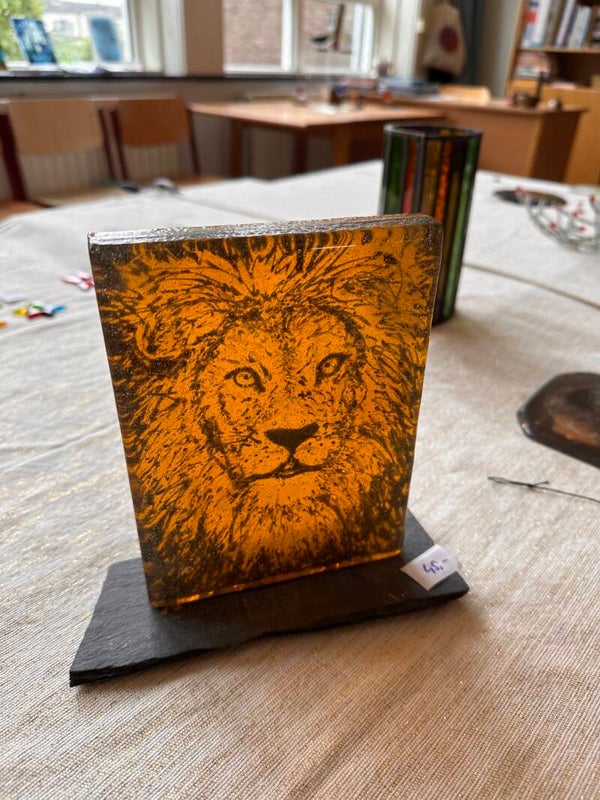Tijdens deze workshop maak je een uniek dik 3D werkstuk van ongeveer 10*10 of 10*15 cm, opgebouwd uit verschillende laagjes glas. Je werkt met een speciale glasverf en brengt daarmee de afbeeldingen op de verschillende lagen glas aan.