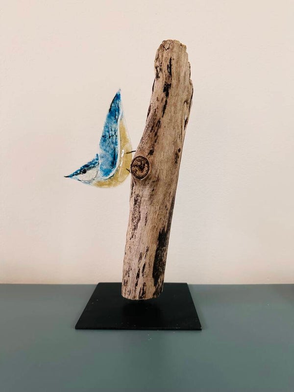 afmetingen:vogel 8x10 cm stam 22x4 cm voet 8x8 cm