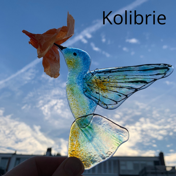 Omdat de vogeltjes op hoge temperatuur in de glasoven gefused worden is het niet mogelijk ze meteen na de workshop al mee te nemen. Langzaam opwarmen en afkoelen is belangrijk om te zorgen dat er geen spanning in het glas komt. In de week na de workshop zijn de vogeltjes af te halen in mijn atelier in Haarlem. Het is eventueel ook mogelijk de vogeltjes met de post te verzenden.